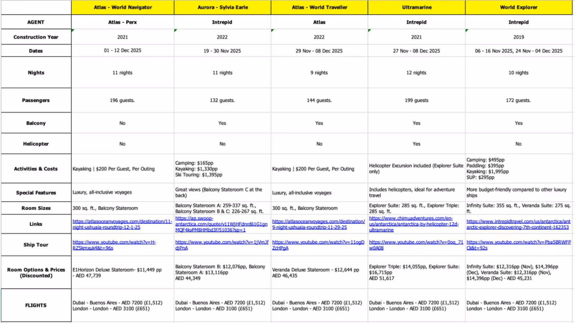 A major part of the planning process was evaluating different expedition ships. Given that there are a variety of vessels catering to different travel styles, I created a detailed spreadsheet (love a good spreadsheet) comparing key factors: ship amenities, cost, comfort levels, luxury offerings, and overall value for money. My goal was to find the perfect balance between adventure and comfort.