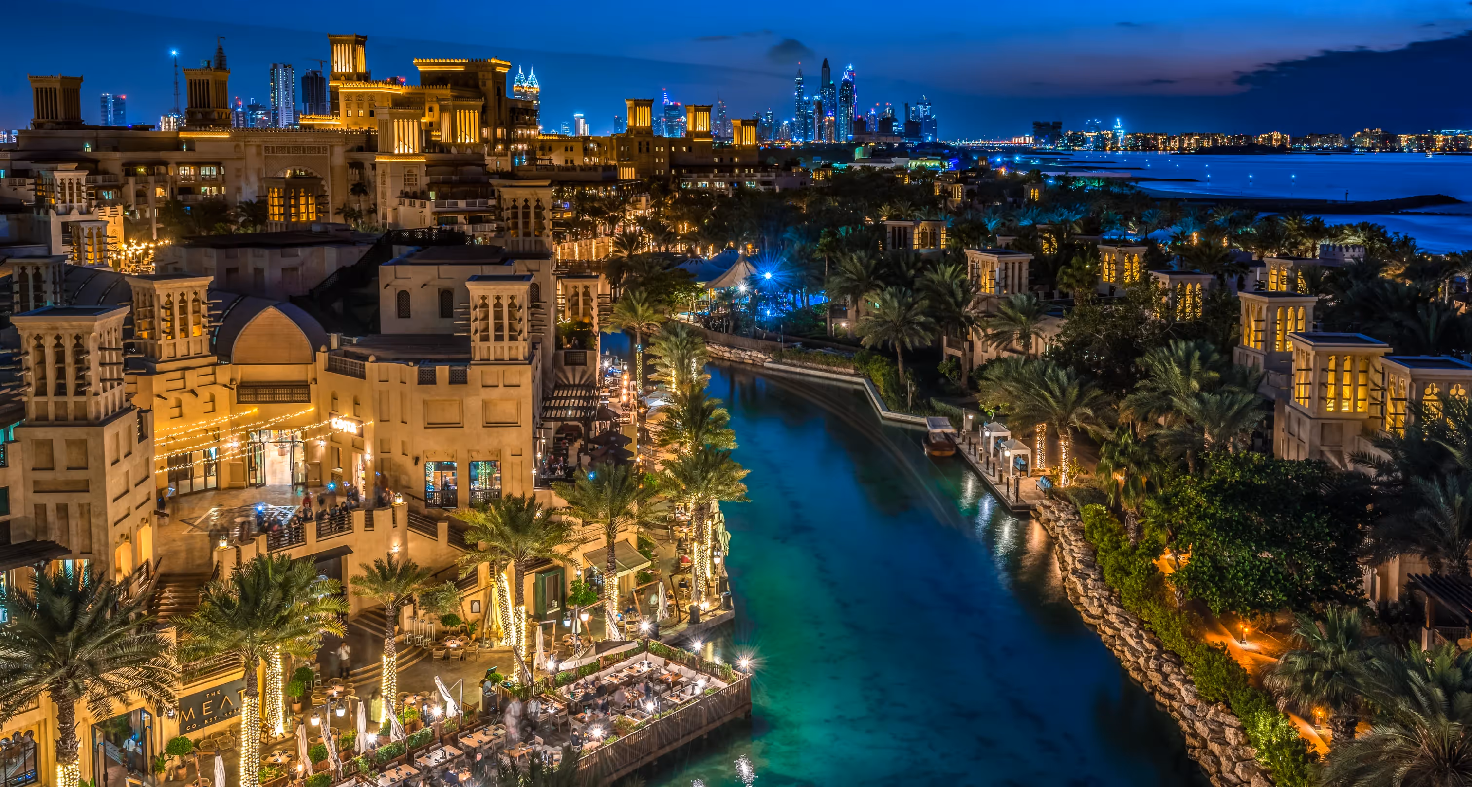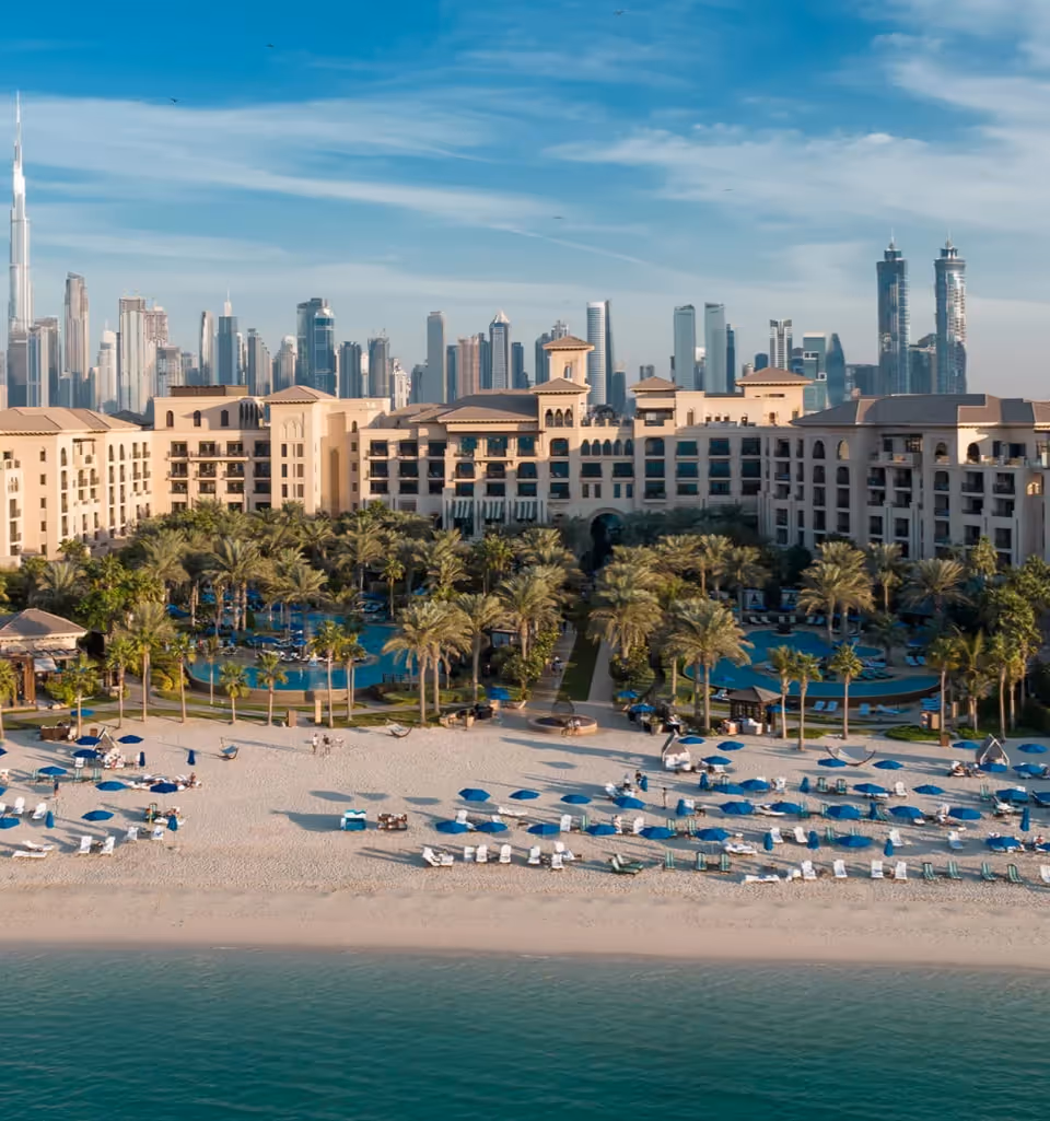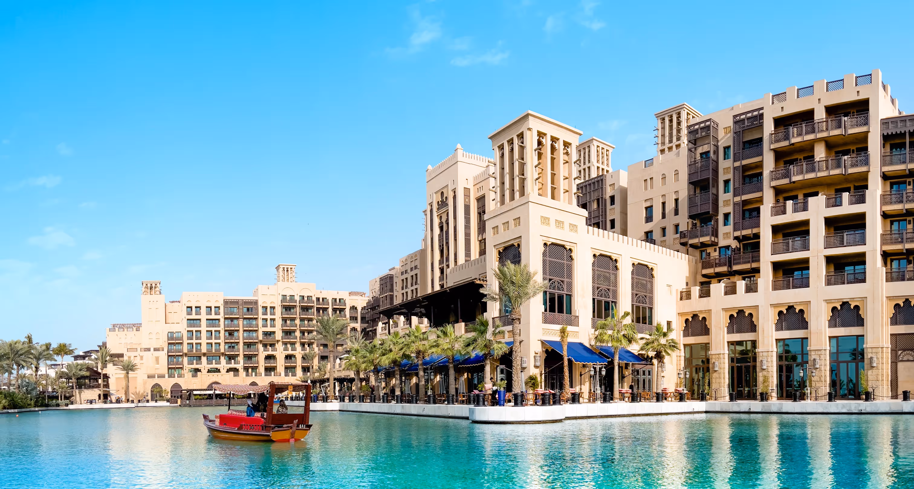 Madinat Jumeirah blends traditional Arabian charm with modern luxury across a vast waterfront resort. With private beaches, lush gardens, vibrant souks, and world-class dining, it offers a unique cultural and luxurious experience in the heart of Dubai.